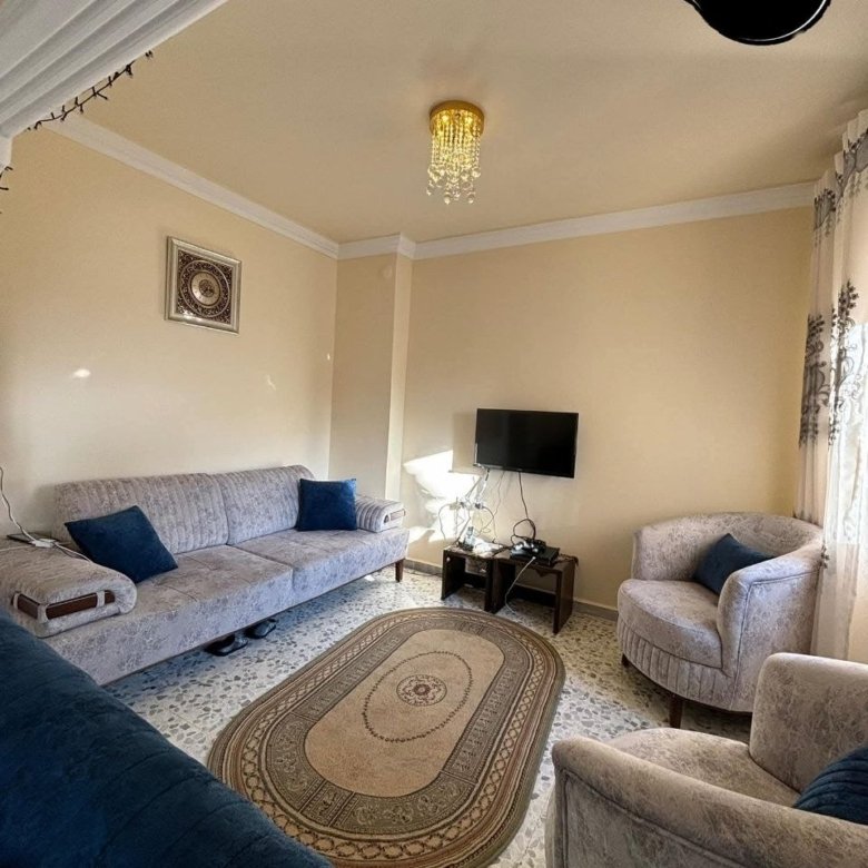 طابق أرضي طلوع مساحة 90م داخلي و 80م خارجي عبارة عن 2غرفتين نوم .. صالون واسع .. مطبخ .. حمام2 .. حديقة أمامية و حديقة خلفية .