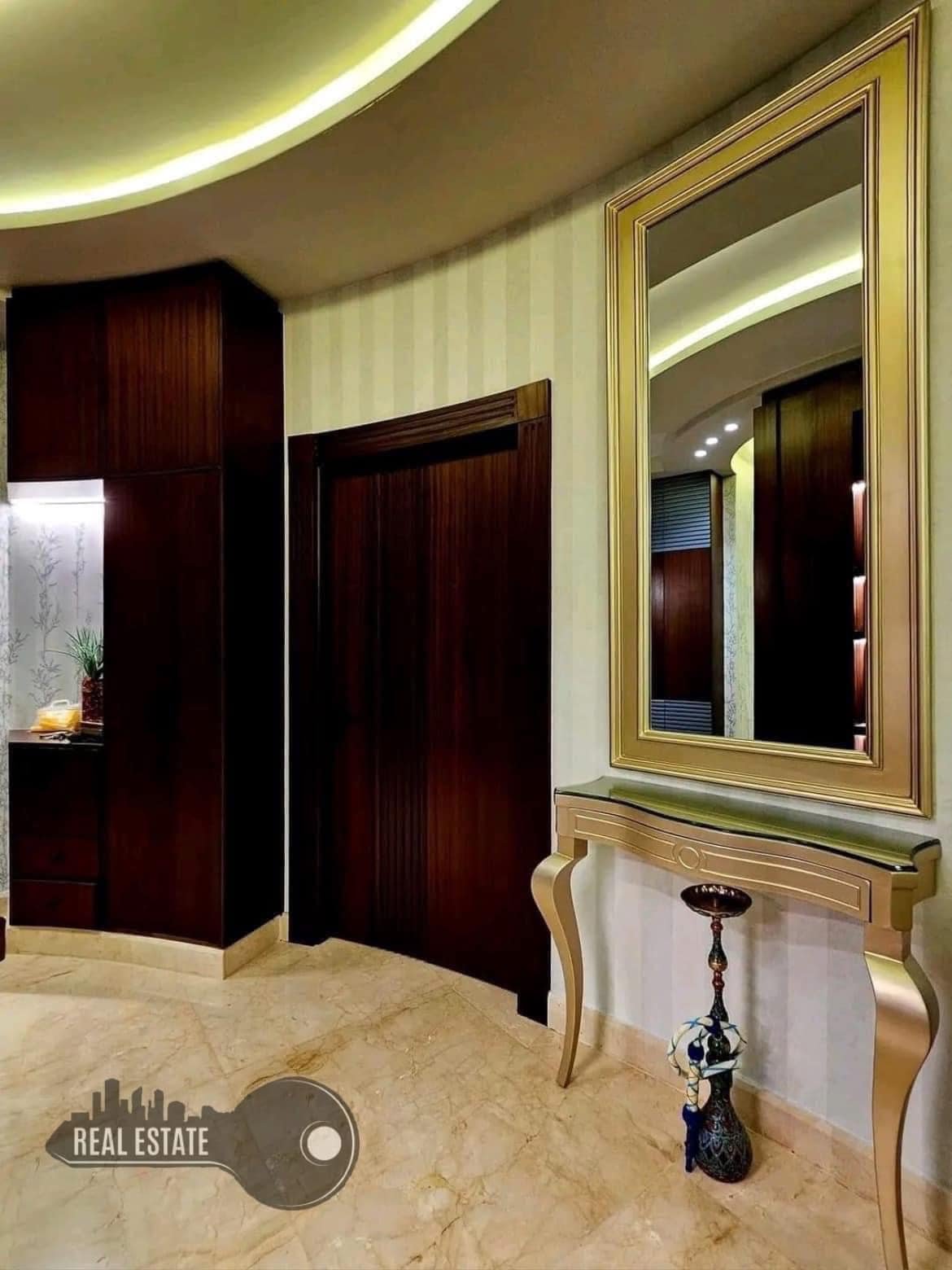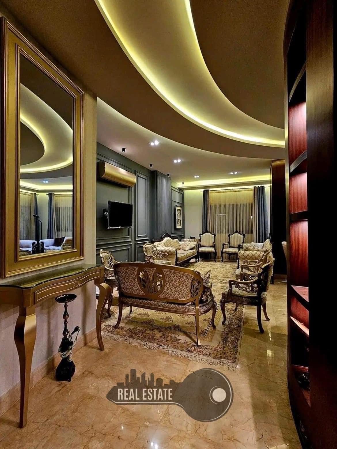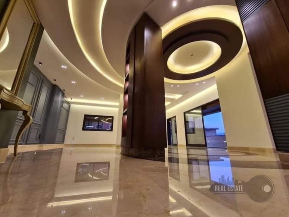 التوزيع صالونات [ ضيوف _ جلوس _ سفره ] مطبخ + ثلاثة غرف نوم احداها ماستر + حمامين + تراسين