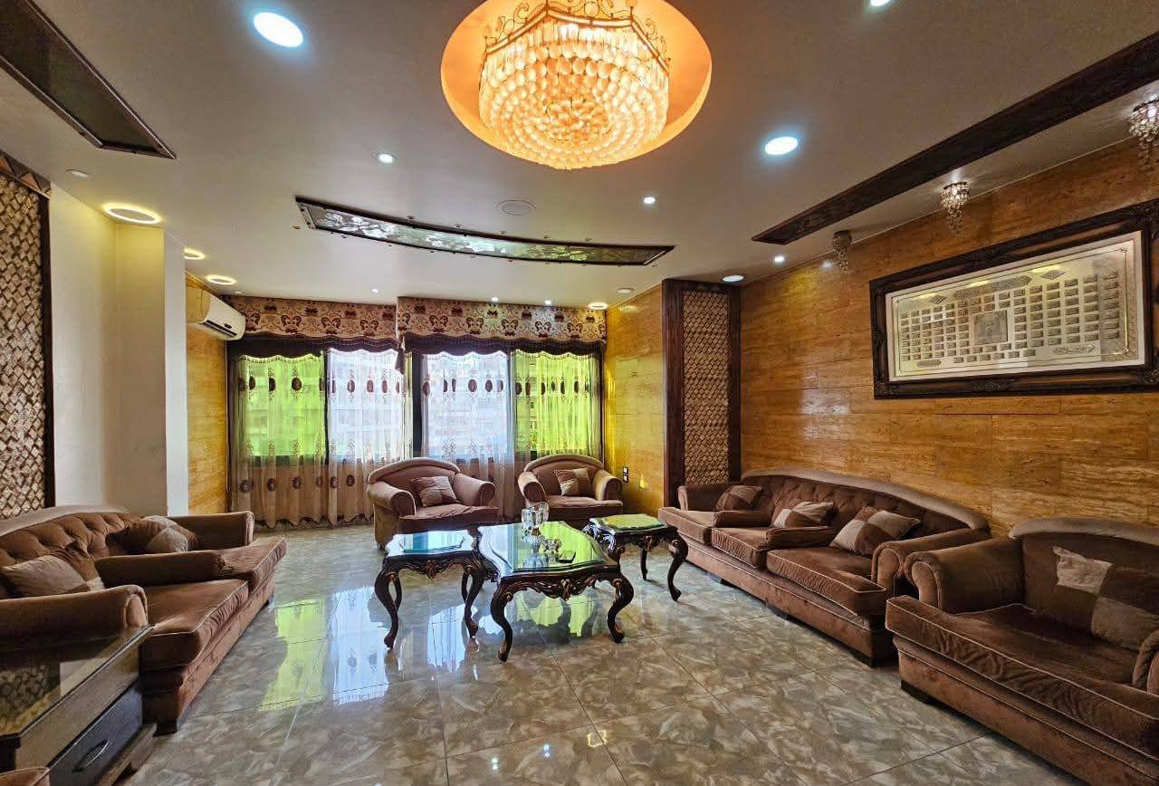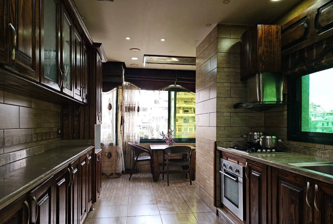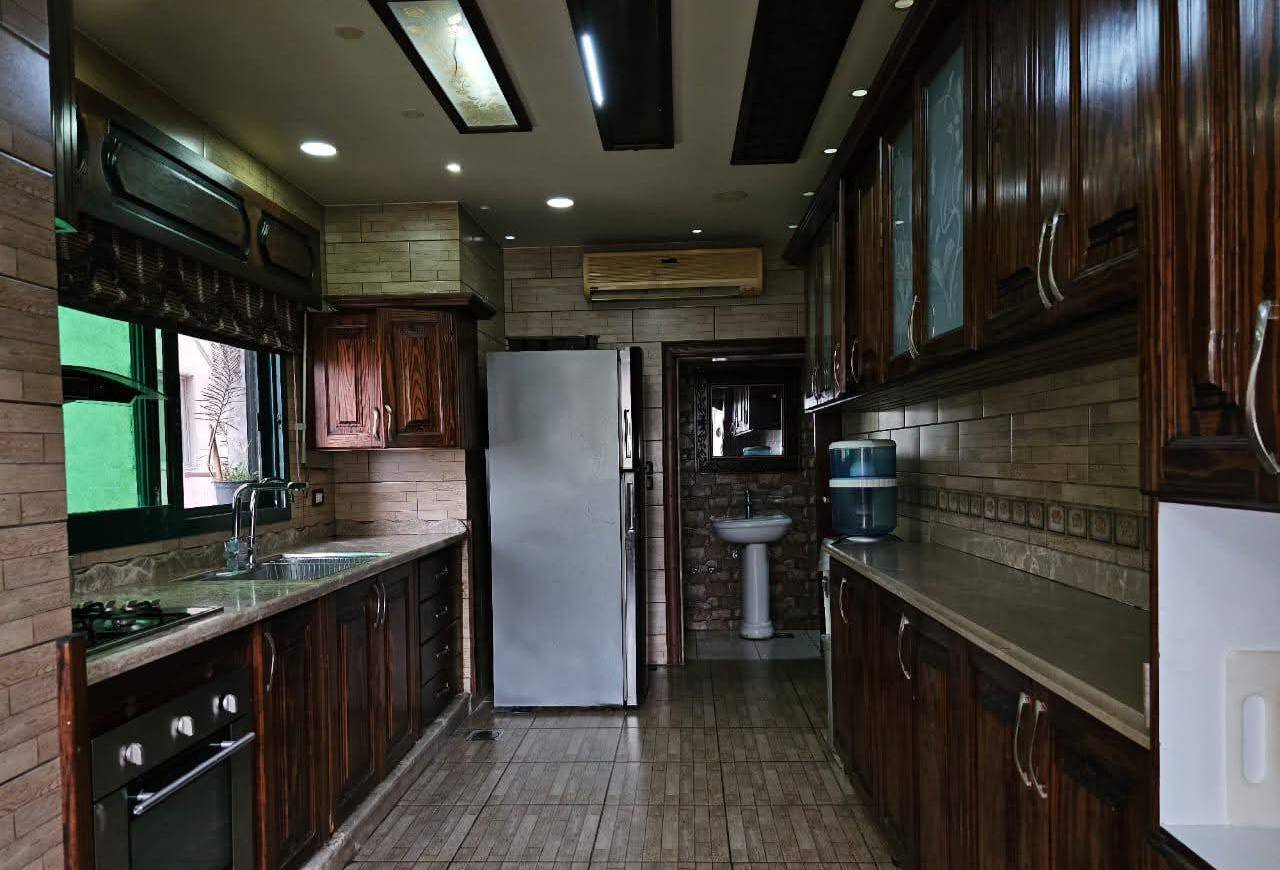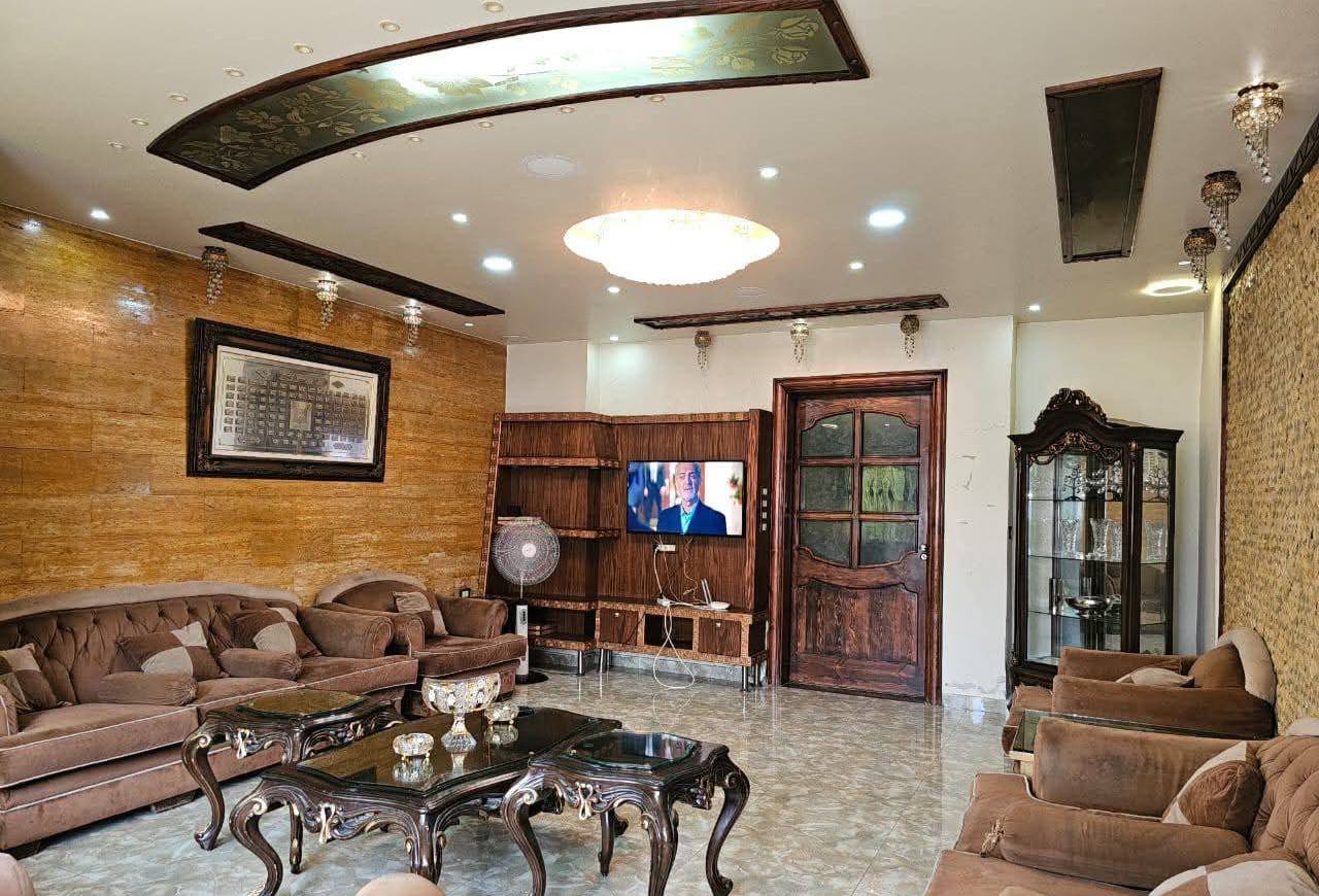 صالون + مطبخ + ثلاث غرف نوم احداها ماستر + حمامين + بلكونين