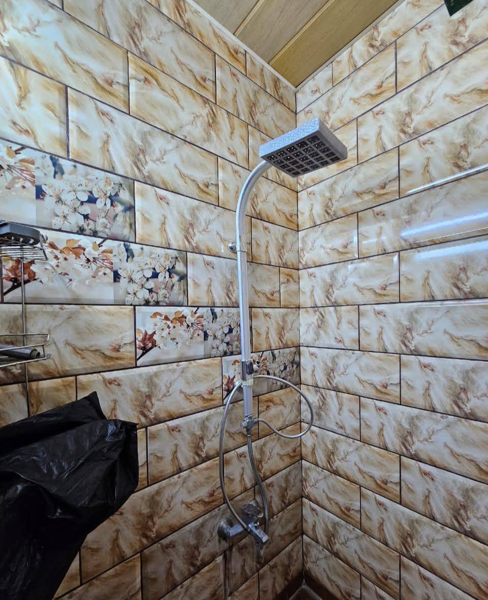 التوزيع صالون + مطبخ + ثلاث غرف نوم احداها ماستر + حمامين + بلكونين