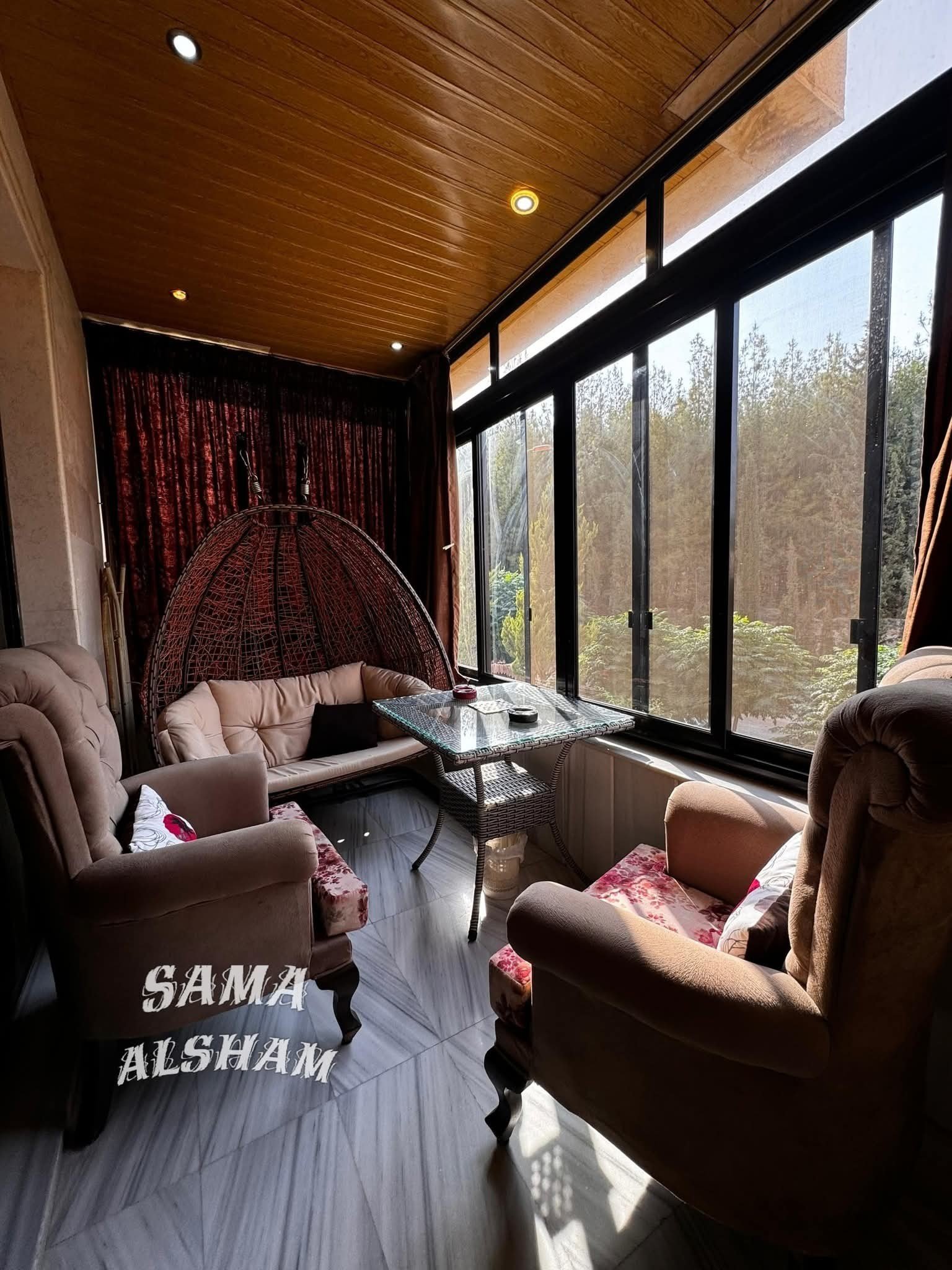 التوزيع ٣ غرف نوم وصالون وسفرة ومطبخ وحمامين وبىندة اطلالة مفتوحة على محمية الصنوبر