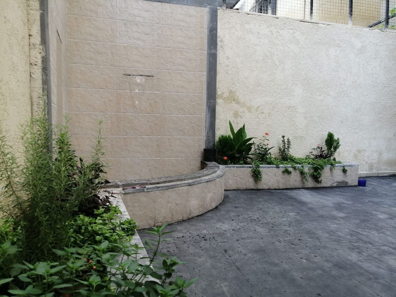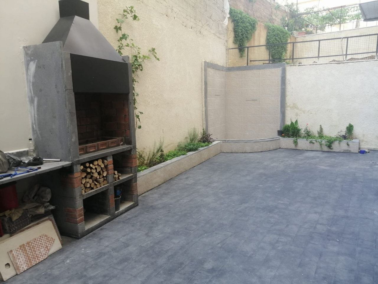 احواض زهور و باربكيو و شلال مياه
