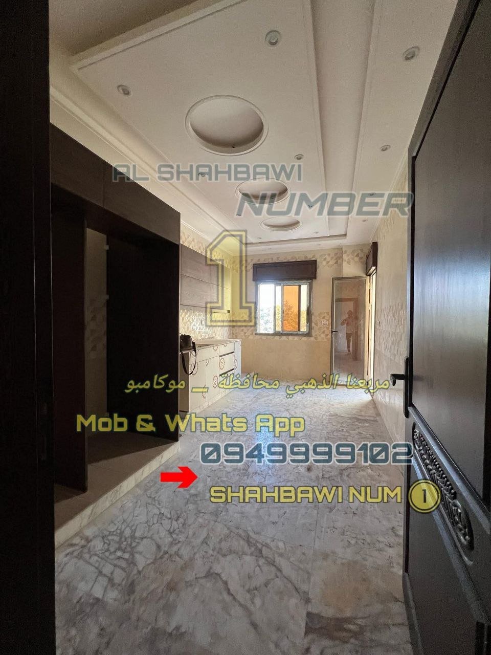 الإكساء الداخلي سوبر ديلوكس أرض رخام افيوني جبسن بورد إنارة حديثة مطبخ شبة جاهز المنيوم