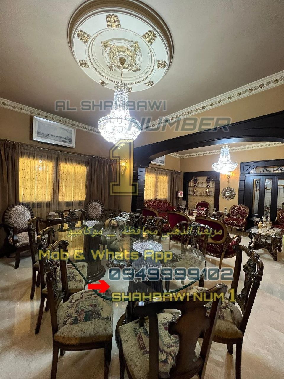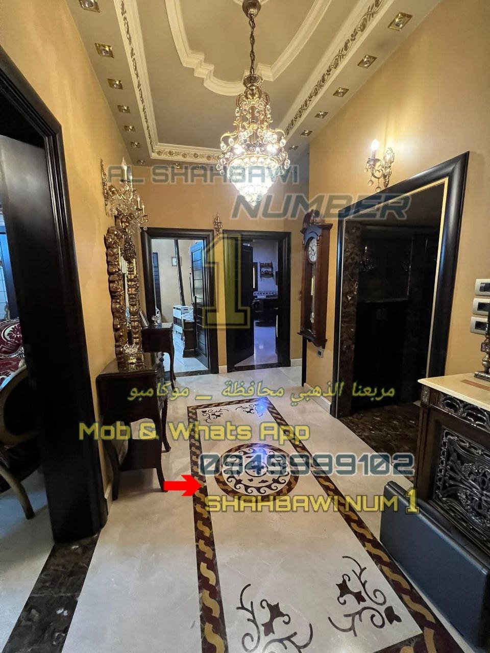 من ٦ غرف مع ٣حمامات الاكساء الداخلي كلاسيكي سوبر ديلوكس أرض رخام كاريرا إيطالي خشب سنديان أبجورات كهرباء مطبخ سنديان المنيوم دبل خارجي طاقة شمسية بديلة بناء ممتاز مدخل فخم سطح مشترك توزيع ممتاز