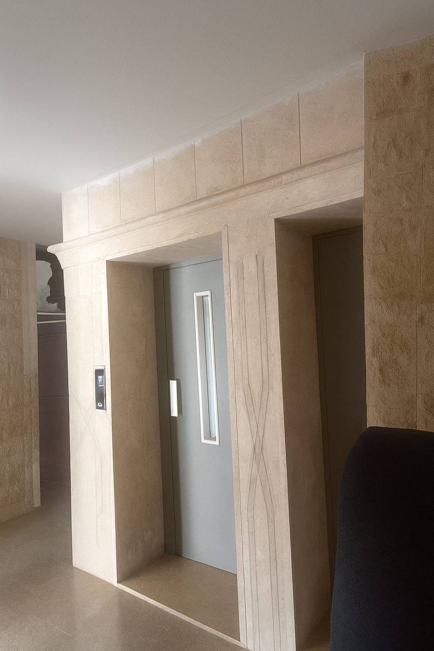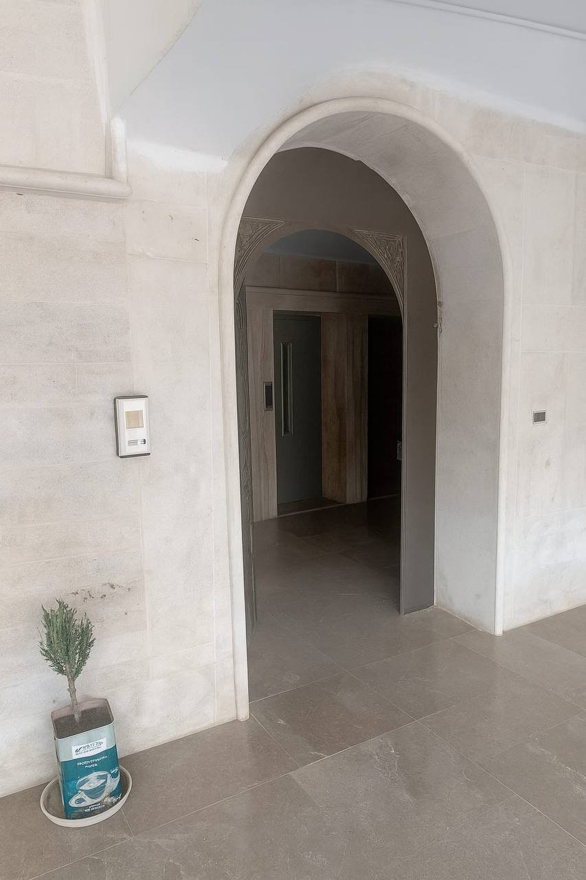 يوجد مصعدين وحديقة وغرفة حارس وغرفة بلقبو لكل شقة