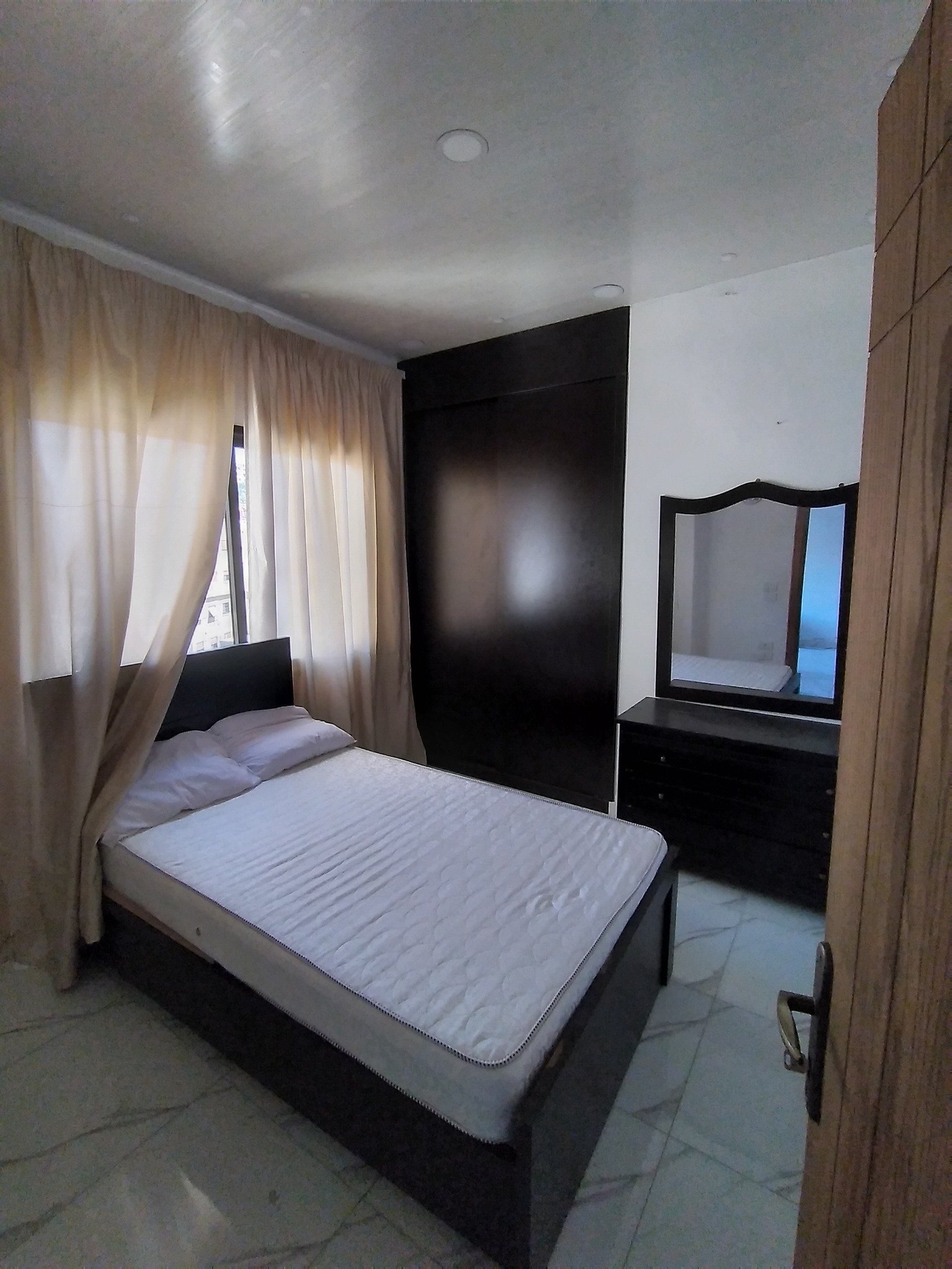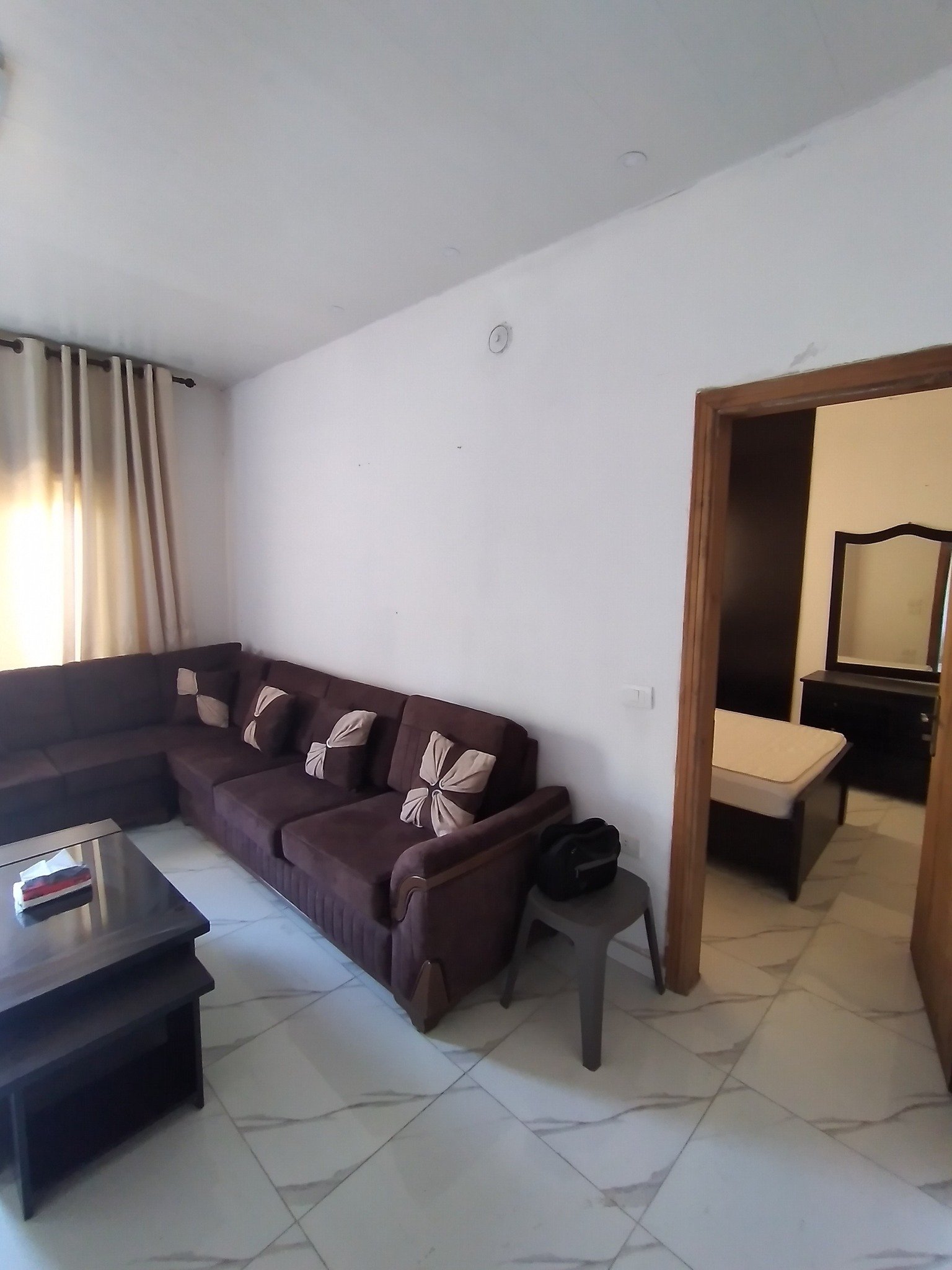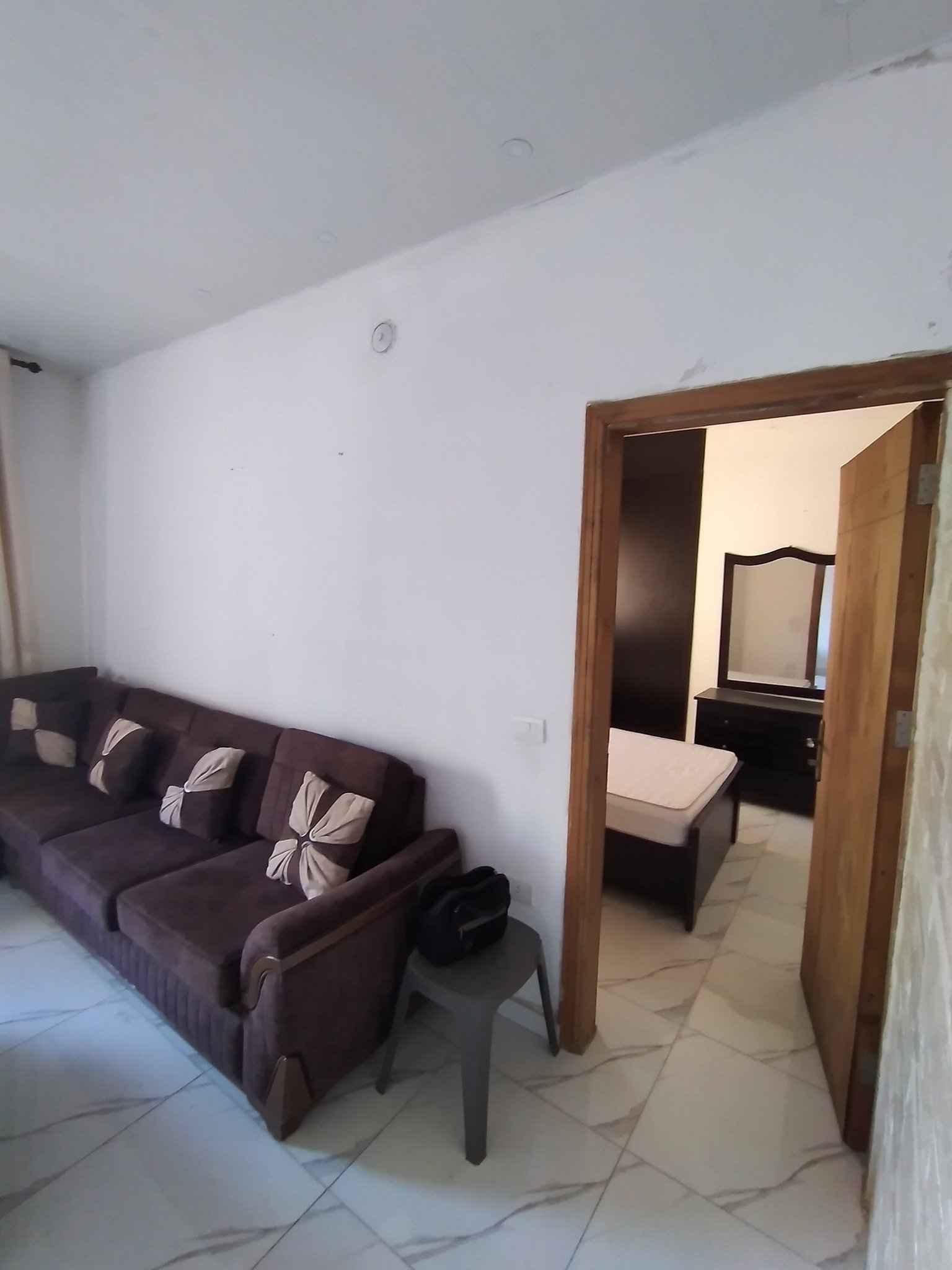 عبارة عن غرفة نوم وصالون ومنتفعات وبرندا