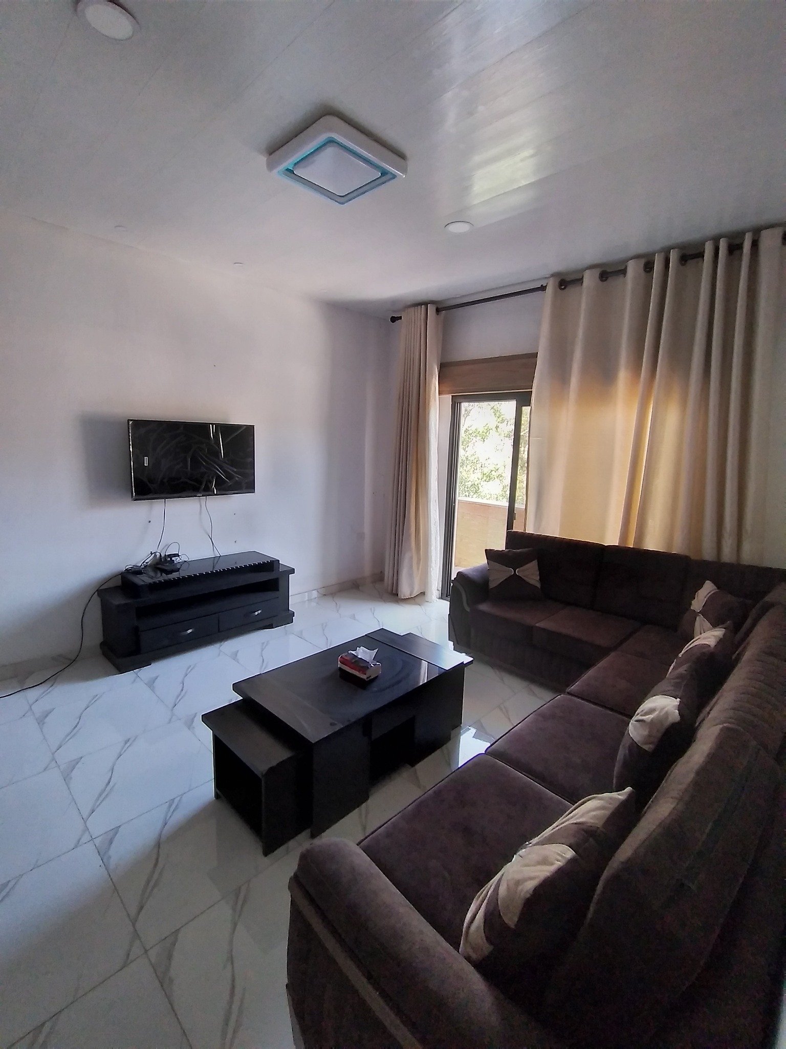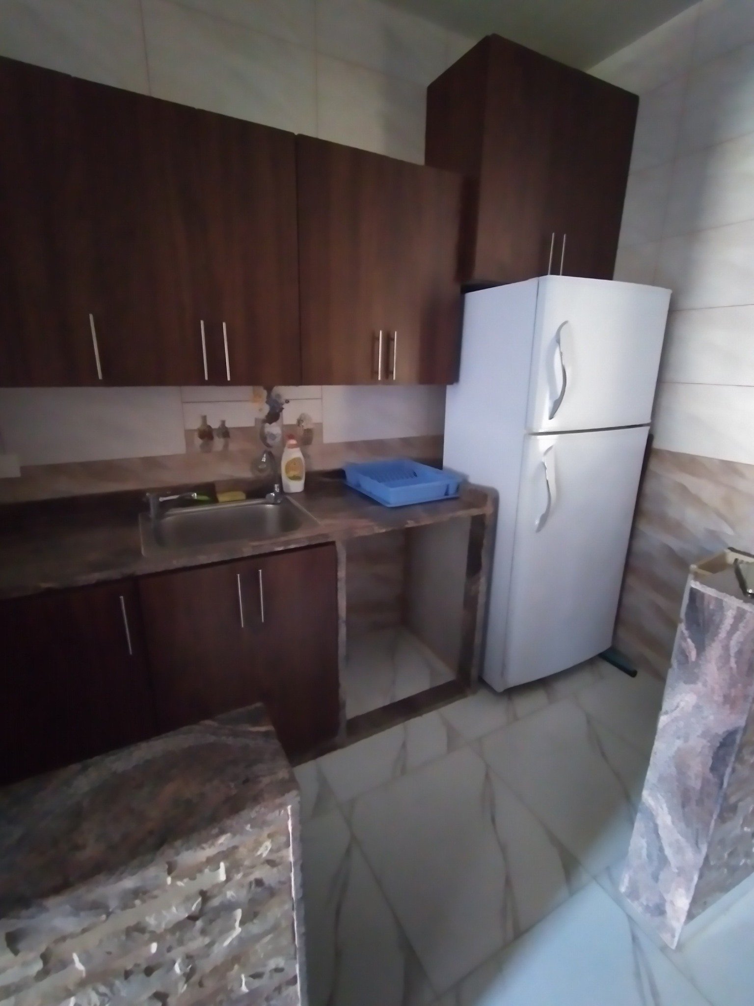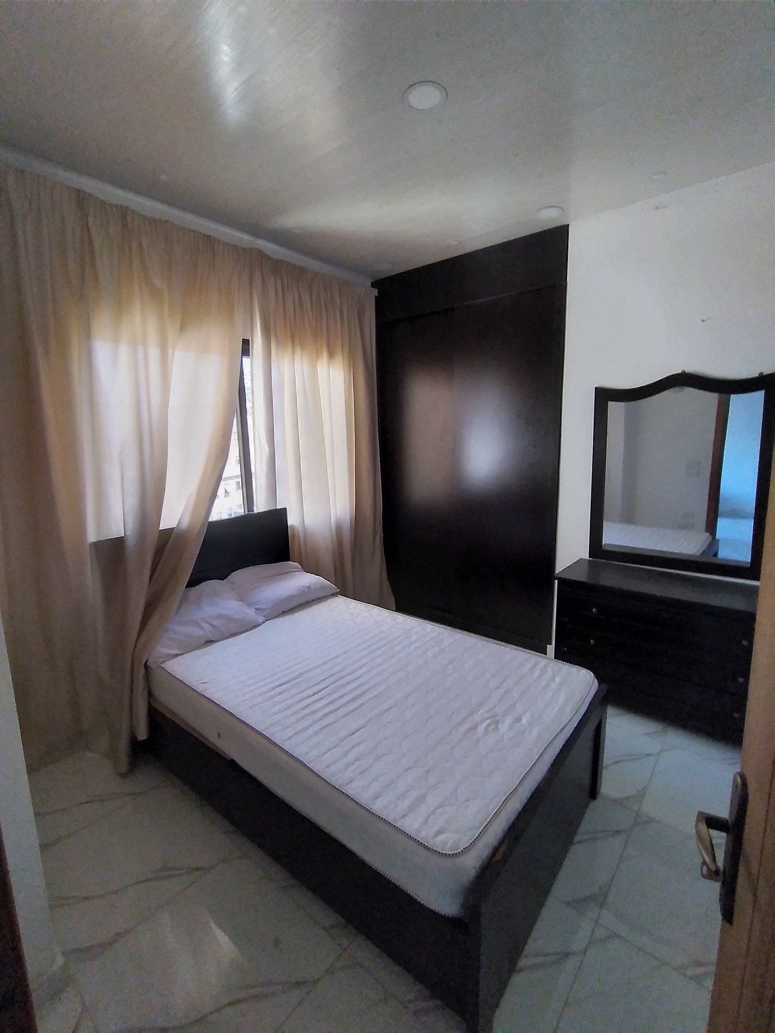 عبارة عن غرفة نوم وصالون ومنتفعات وبرندا