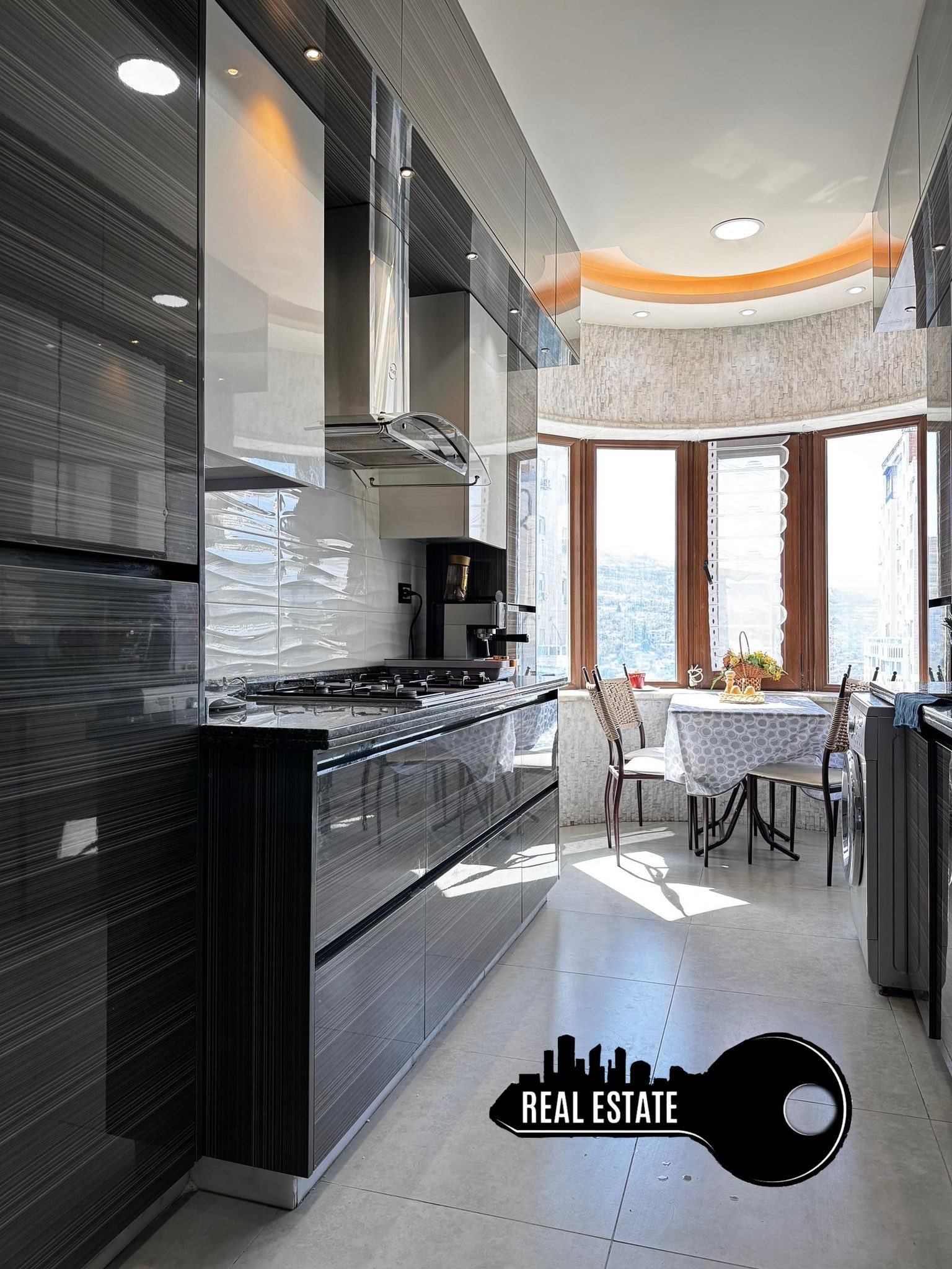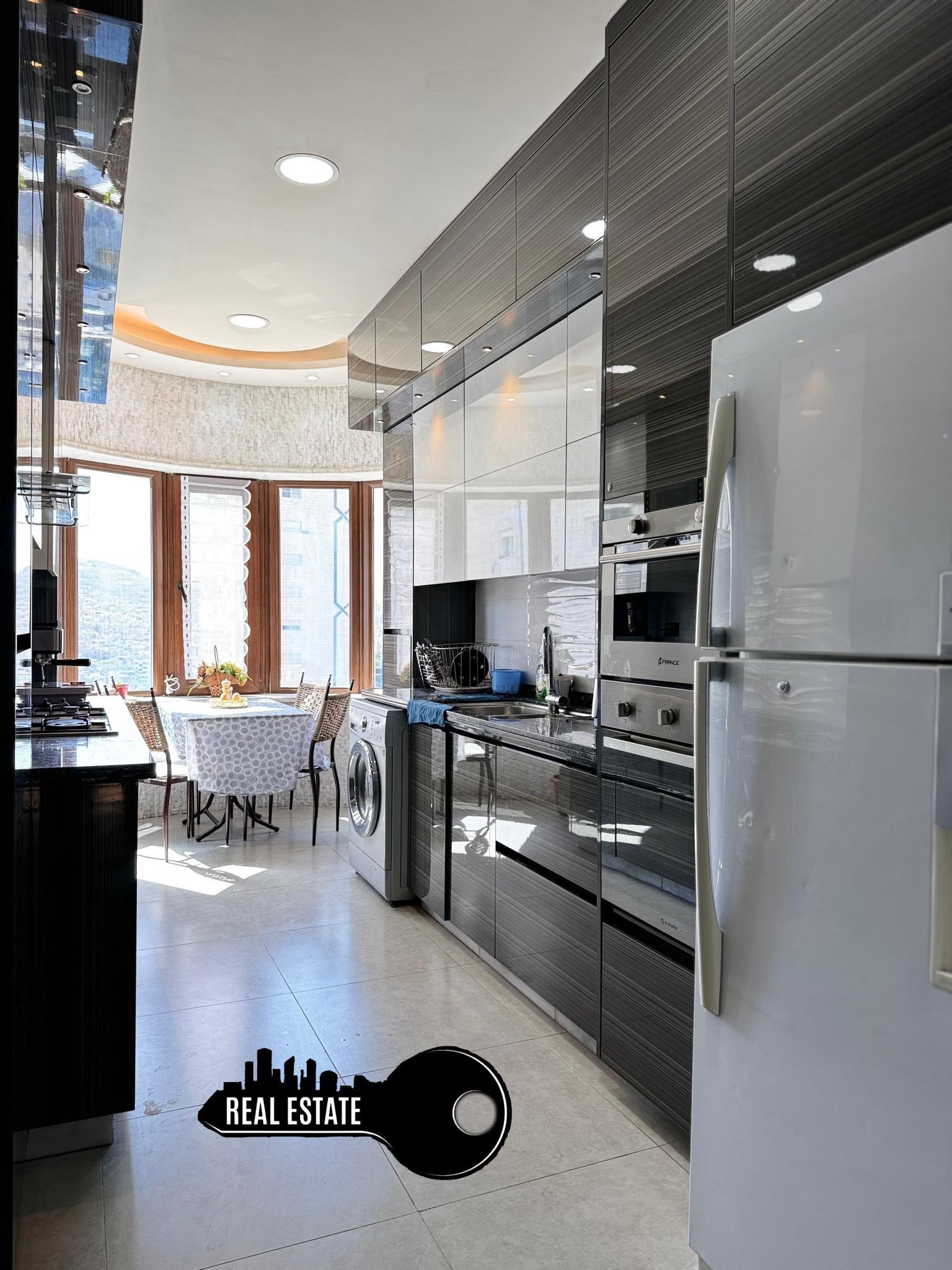 مساحة 200م .. بناء حجر مميز مصعد كراج سيارات تحت الأرض خاص .. عبارة عن 3غرف نوم .. صالون حرف L مقطعين .. غرفة سفرة .. مطبخ .. حمام2 .. موزع .. بلكون2 .. انتريه دخول .. إكساء سوبر ديلوكس