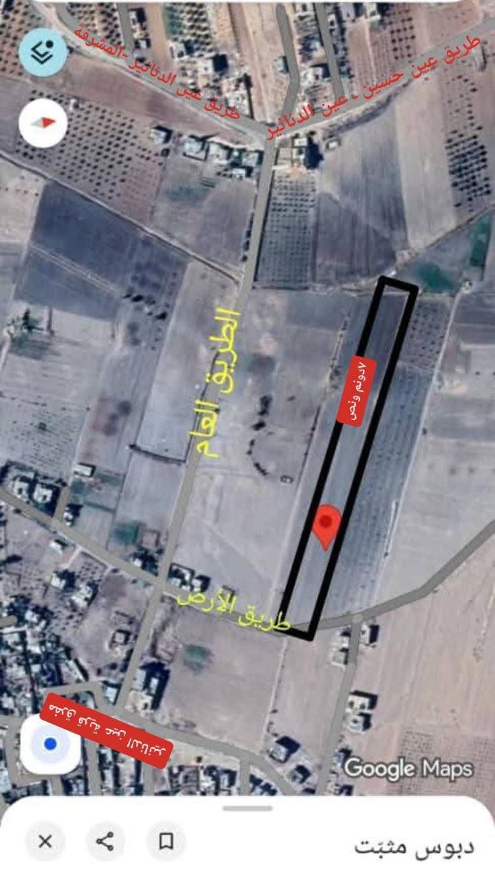 ملاحظة بتبعد عن الزفت الطريق الرئيسي 40 متر والكهرباء والسكن واصل لجانب الأرض . طريق شرقي للأرض