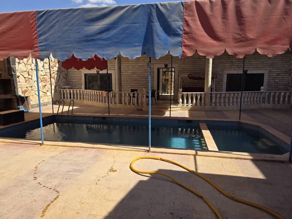 مكونات المزرعة مسبح مفلتر + حديقه + جب جمع + جب اشتراك 4 إنش + طاقة شمسية أربع ألواح + انفنتر+ بطاريات انبوبية عدد 2