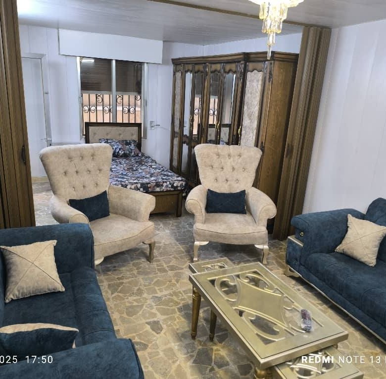 للايجار شقة في ضاحية قدسيا ارضي بال e2 غرفتين + صالون وبرتدا دفع سنة