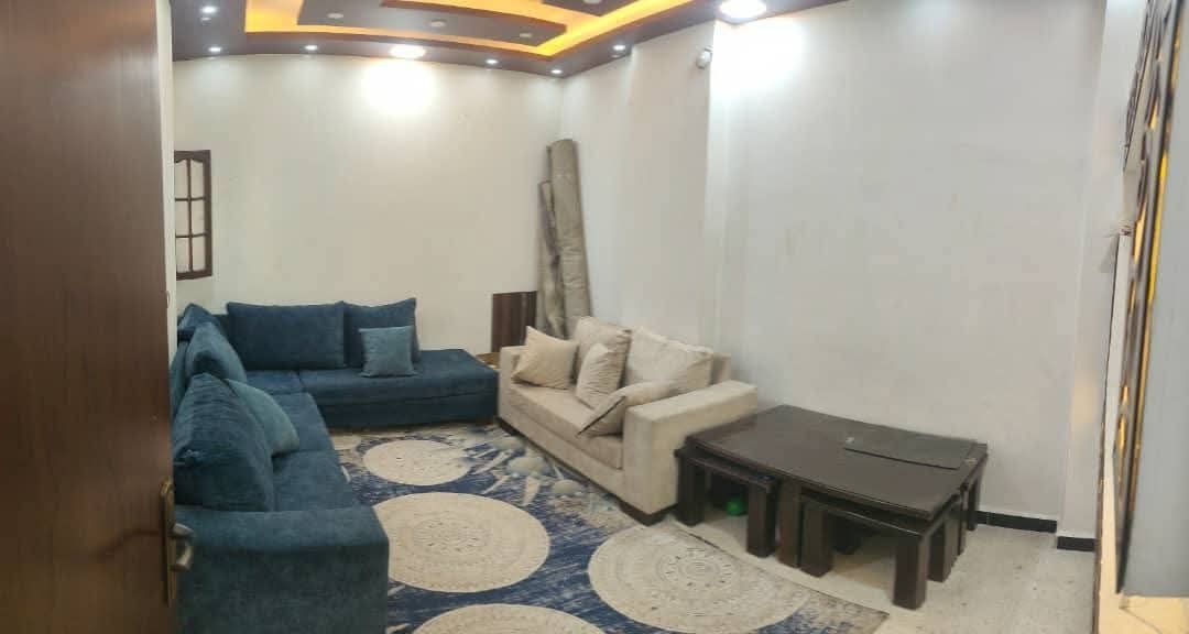 مساحةوتوزيع: ١٠٠متر غرفتين وصالون كبير مقطعين وبرندة