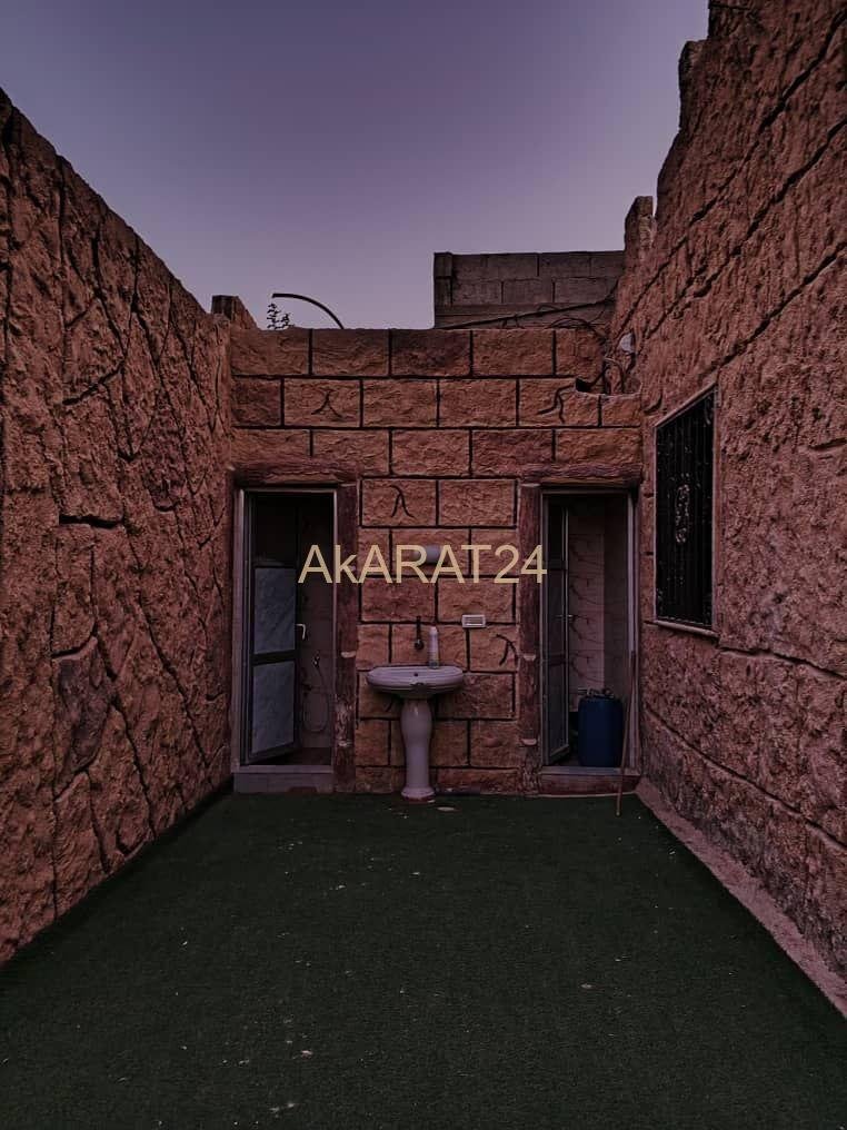 البناء غرفتين + صالون + مطبخ اميركي حمام عدد 2 ( داخلي ) حمام + مشلح (خارجي )