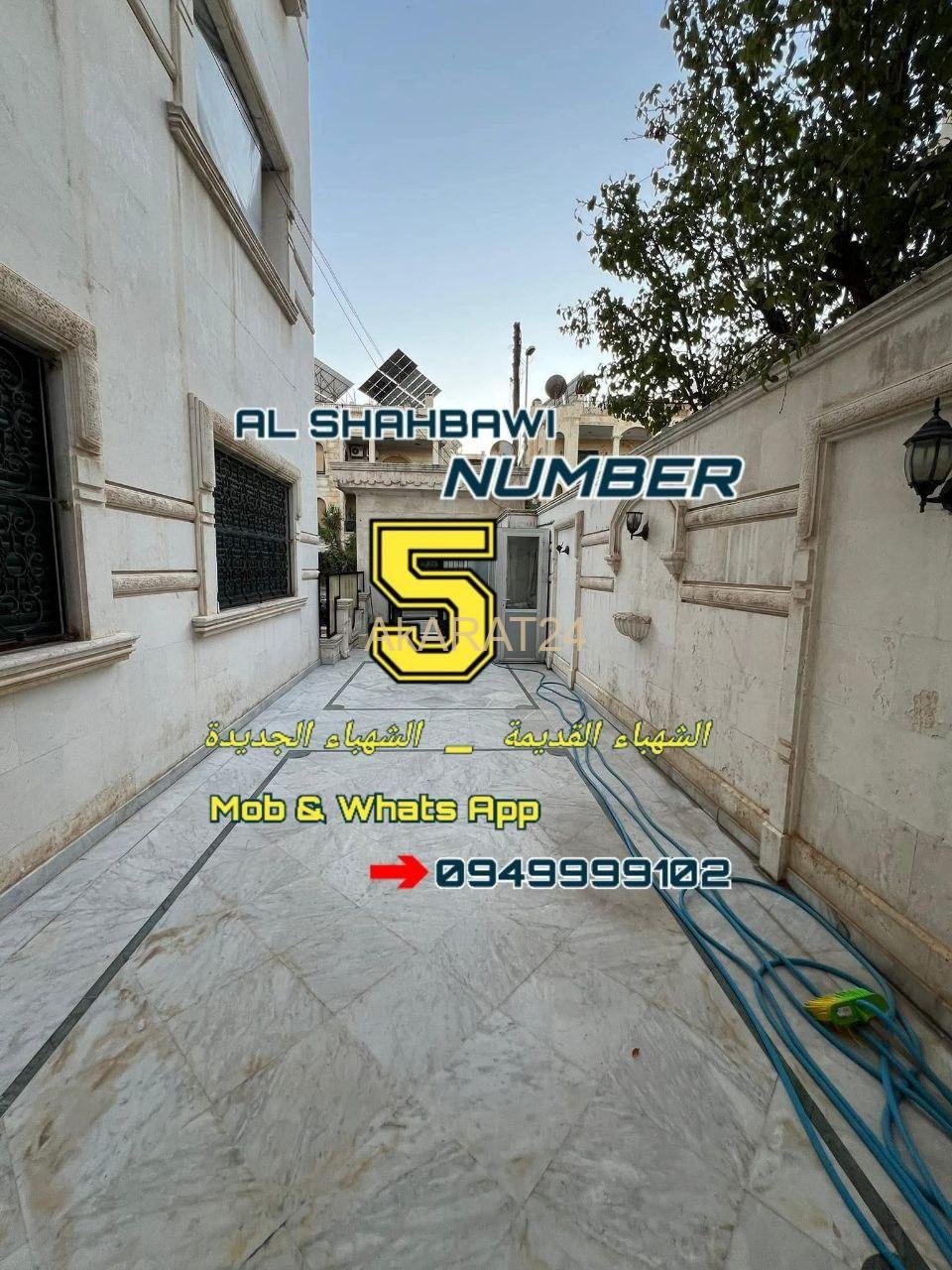 حديقة أمامية مميزة للبيع بالشهباء الجديدة بشارع اكاسيا جمعية الجامعة فئة أولى نص نزول بلاطة 3 اتجاهات