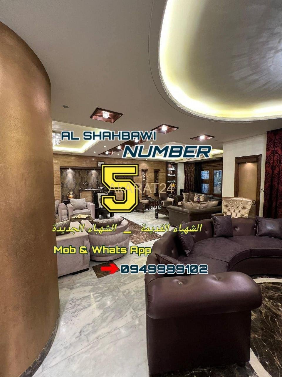 مساحة حوالي 320 متر مربع الاكساء الداخلي سوبر ديلوكس أرض رخام كاريرا إيطالي خشب سنديان جبسن بورد إنارة حديثة المنيوم خارجي دبل كاتم للصوت والحرارة