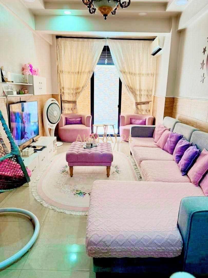 التوزيع غرفتين نوم وصالون كبير مع حديقة قبلية ومشمسة