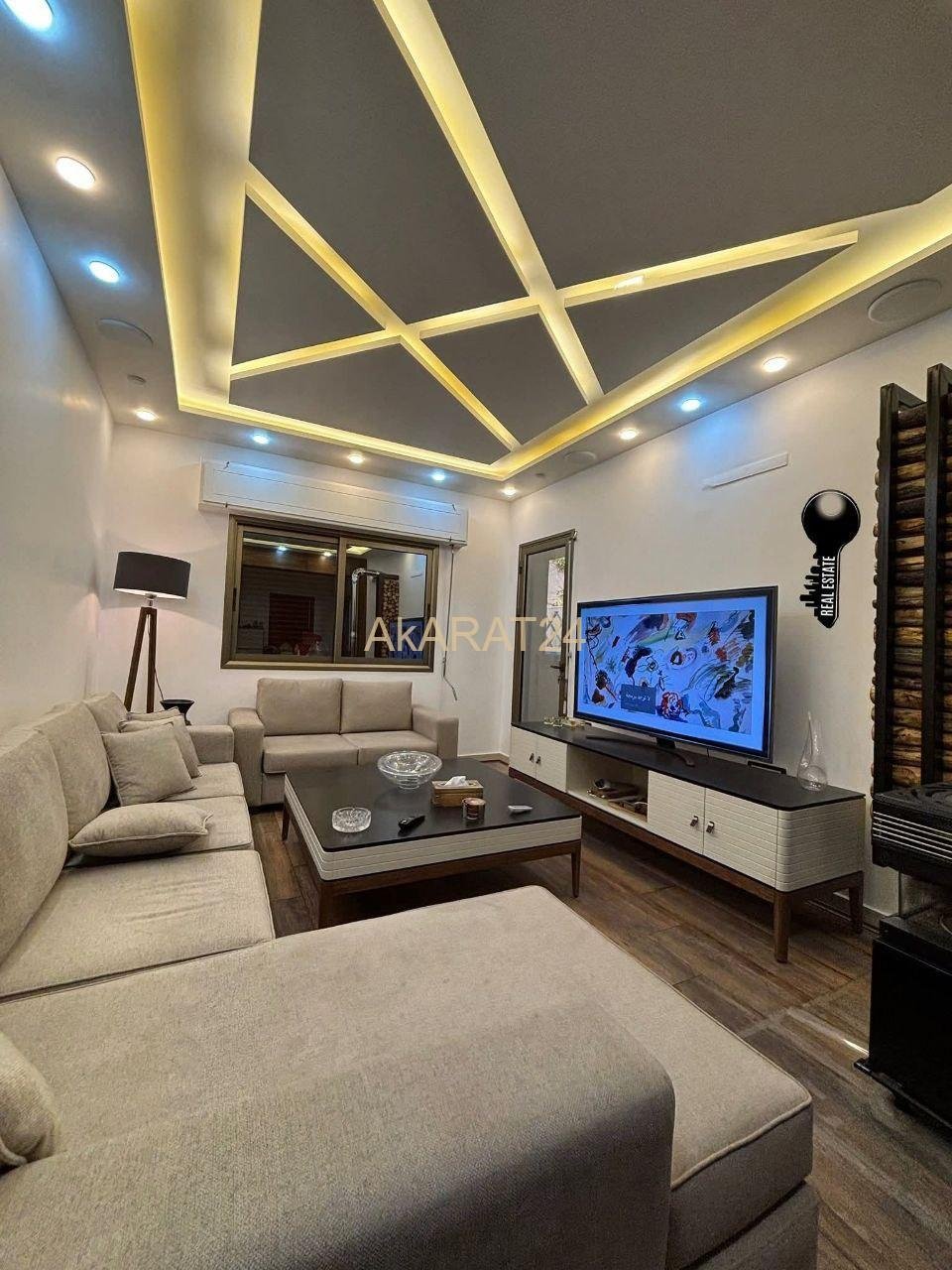 إكساء سوبر مع أرضيات خشب باركيه طبيعي . فراغ طابو . سطح مشترك .