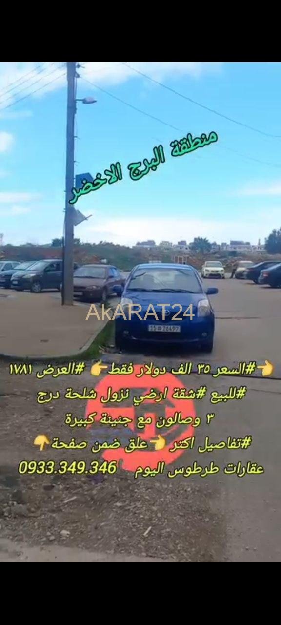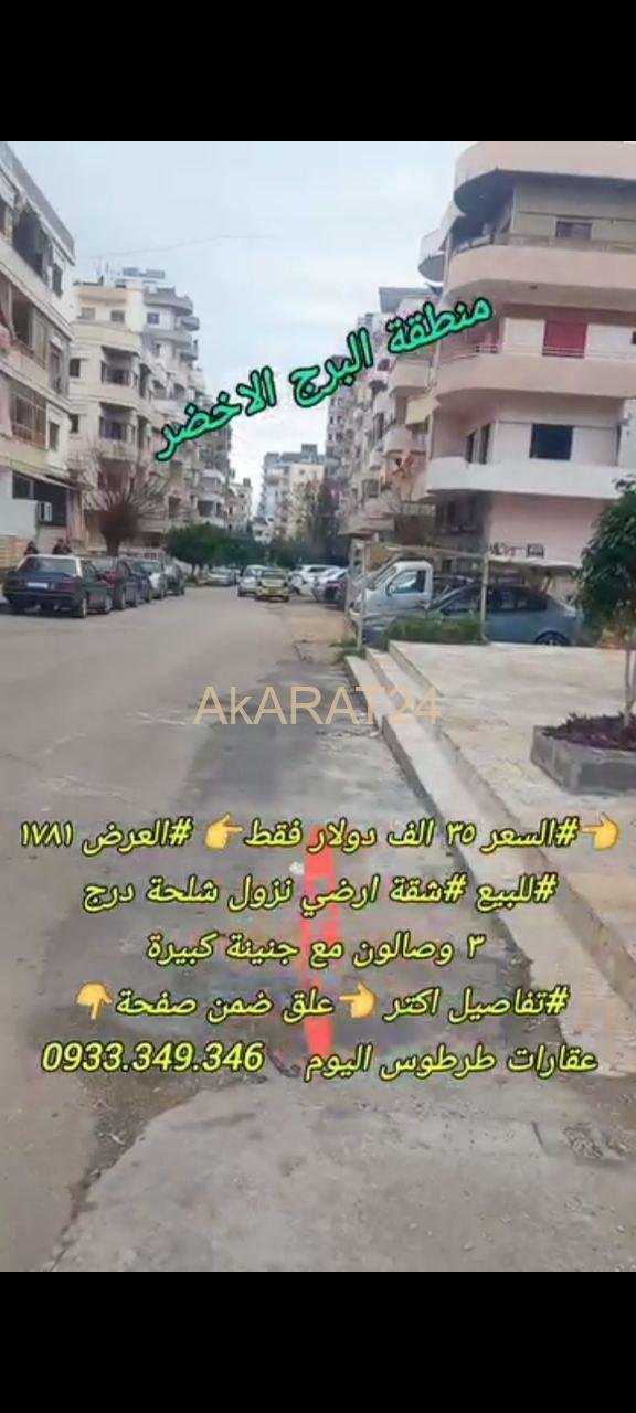 للبيع شقة نزول شلحة درج منطقة البرج الاخضر ٣ غرف وصالون وجنينة كبيرة اكساء عادي