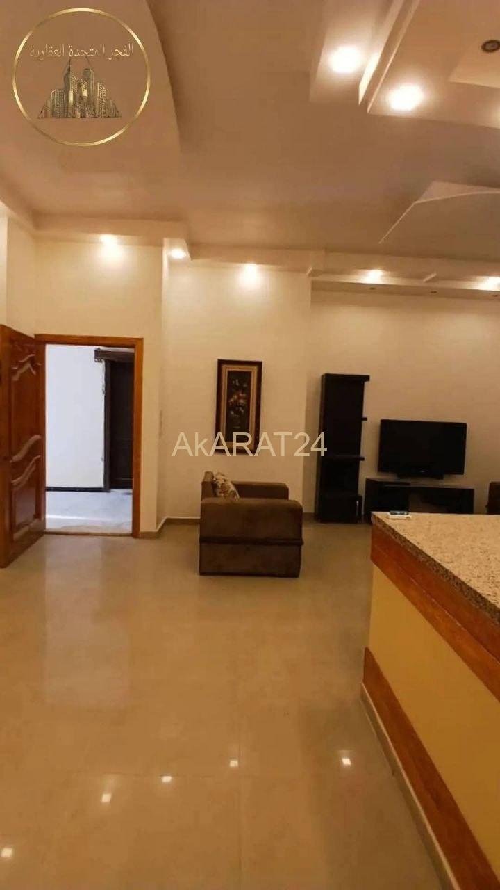 التوزيع:صالون كبير على شكل حرف L، مطبخ، برندا، حمام، غرفتان نوم