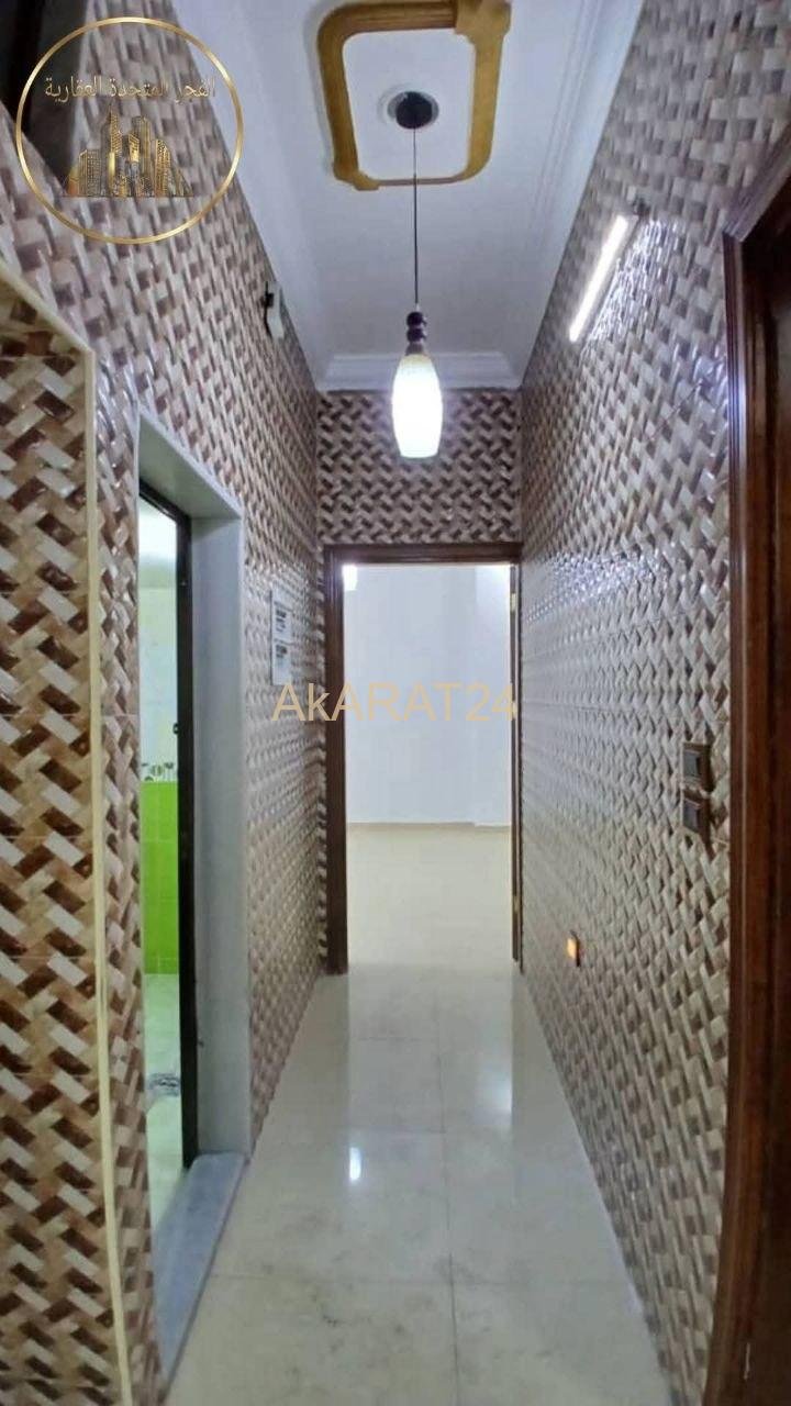 التوزيع غرفتين نوم + صالون + مطبخ + حمام ضيوف + حمام عربي + برندا.